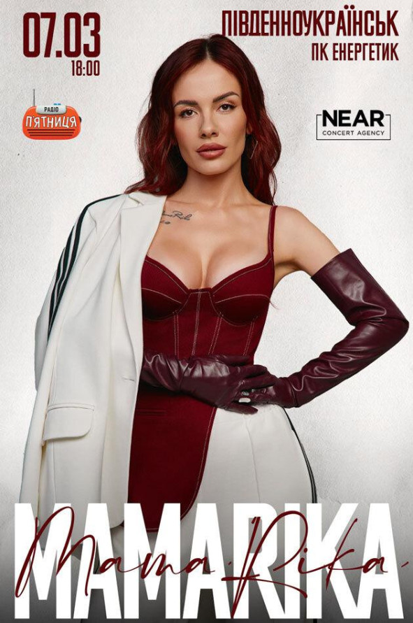 7 марта 2026 года во Дворце культуры “Енергетик” состоится концерт MamaRika в Пивденноукраинске.
